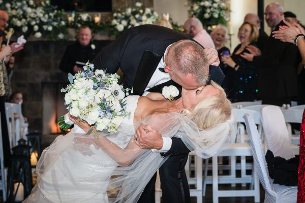 Castle Falls specializes in outdoor ceremonies which are held throughout the year. In case of inclement weather, the ceremony can be moved inside The Grande Hall. If the ceremony is held inside, both the ceremony and reception are in the same room and guests would be seated at the tables that are pre-set for the reception.